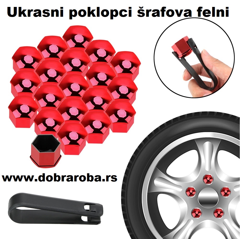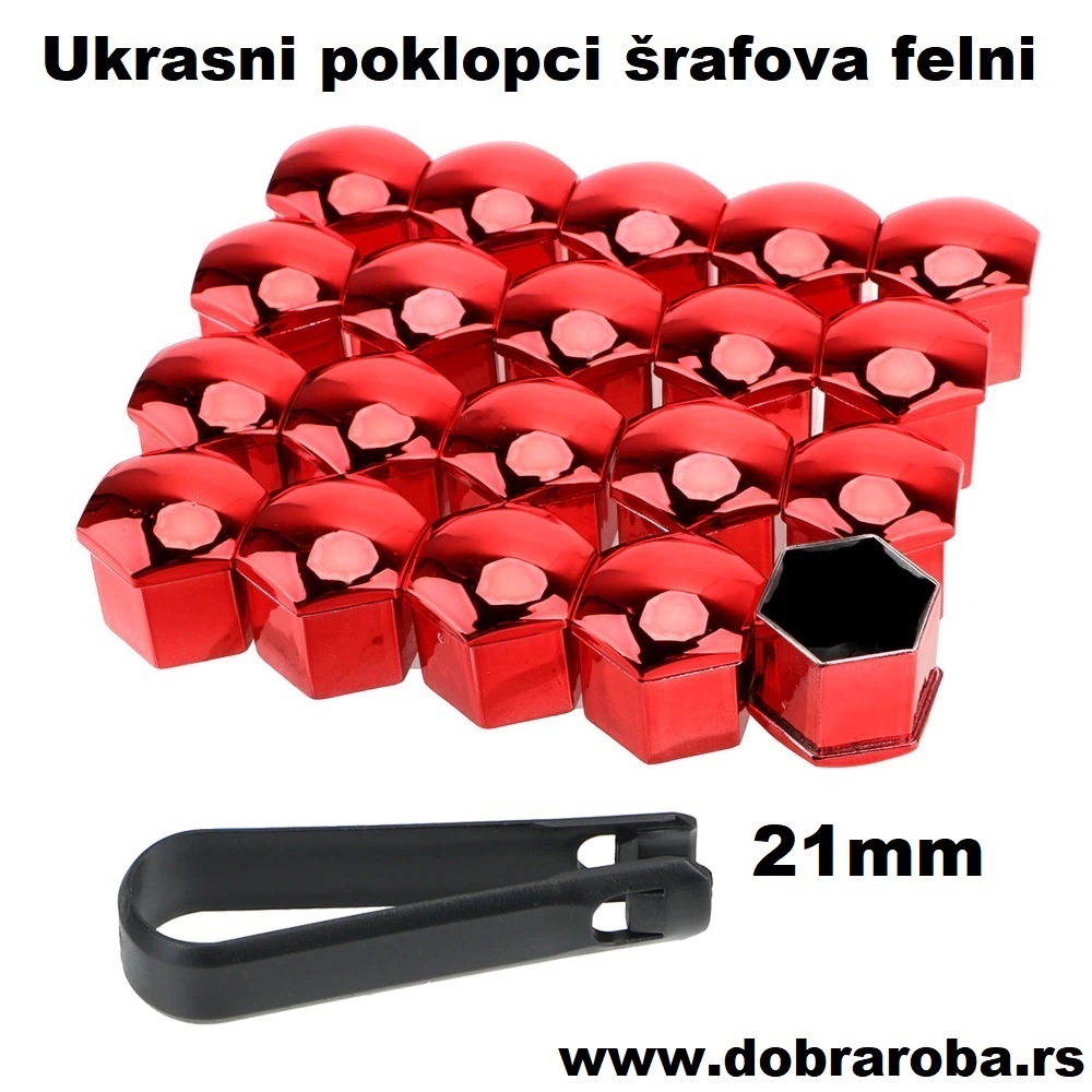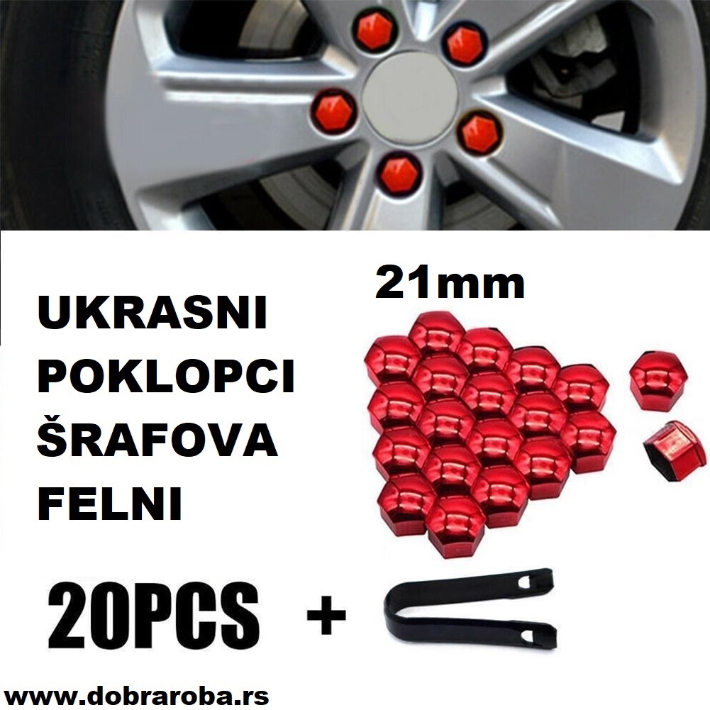 Set od 20 novih ukrasnih poklopaca šrafova felni. – CRVENI – 21mm