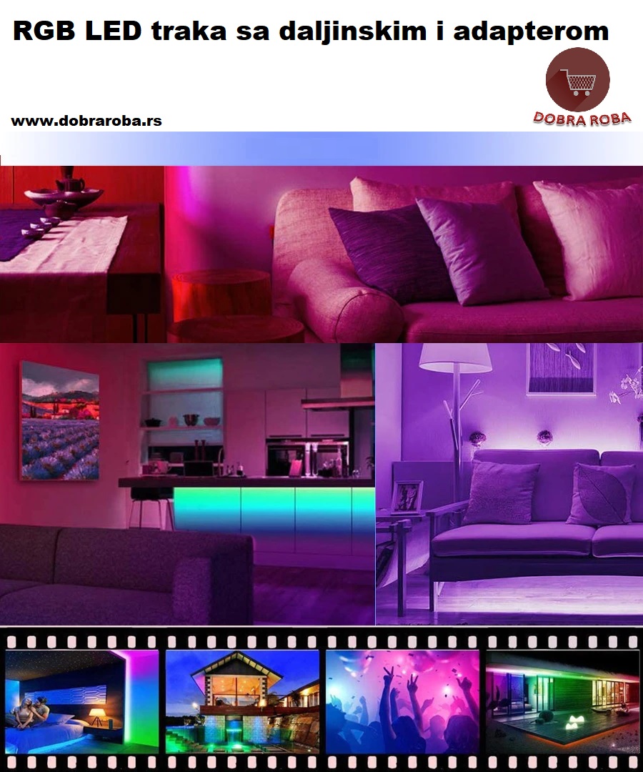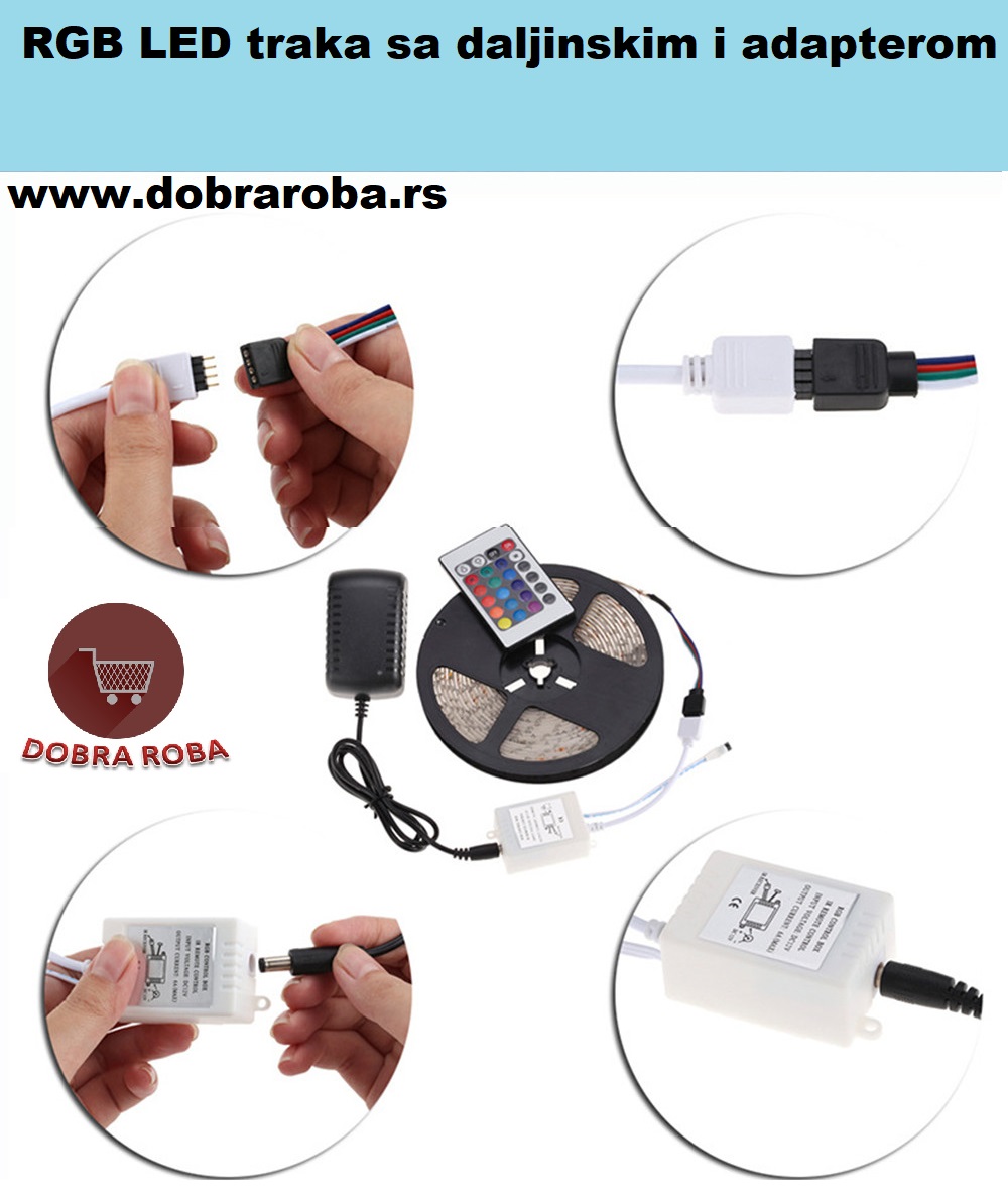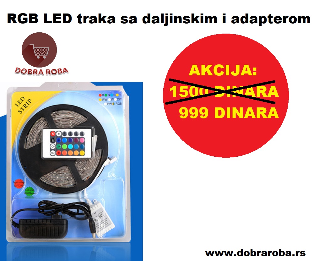 RGB LED traka 5 metara sa daljinskim i adapterom.